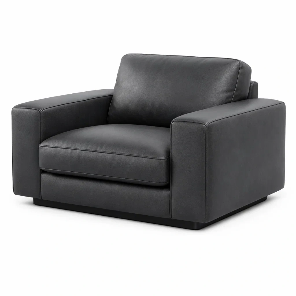 Structure robuste avec accoudoirs larges, assise et dossier rembourrés.